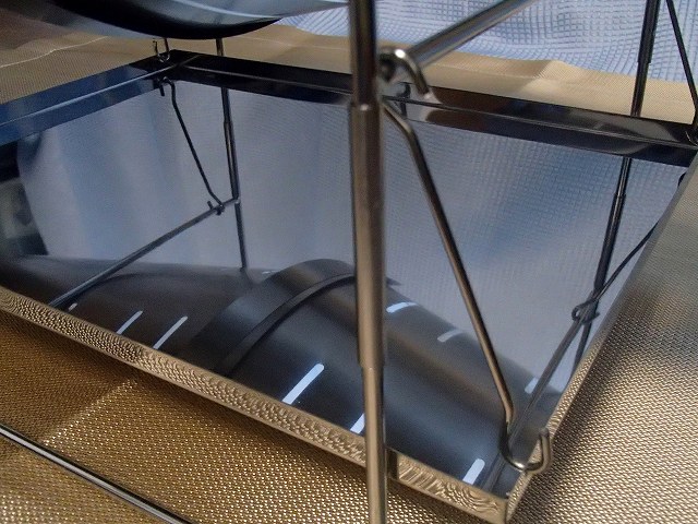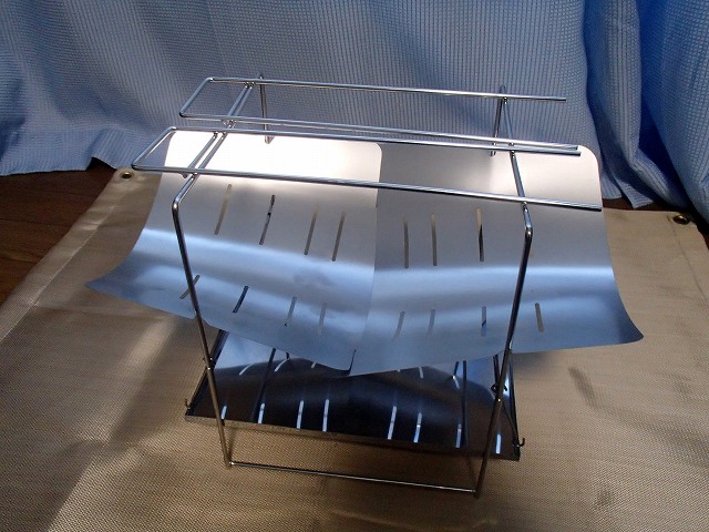 灰受け皿はフレームに吊るすタイプですが、吊るさずに使ってます。灰捨てる時には結局スパッタシートに灰を落とすんですけどね〜。パチグリルって何?ですけど、ピコグリルのパチもんだからパチグリルですね。関西では「偽物」のことを「パチもん」っていうので、パチグリルなんだと思います。でも、もう標準語なのかな??