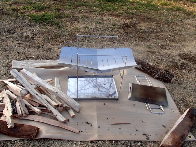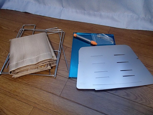 さっと焚火台をだして、ささっと火をつけてがやりたかったので、パチグリルを導入しました。最初にキャンプ道具を選んだ時にはTOKYO CAMPの4980円のパチグリルも検討してましたが、スパッタシートとと灰受け皿もついて2700円だったのでこれにしました。(火吹き棒は要らないけどついてた)