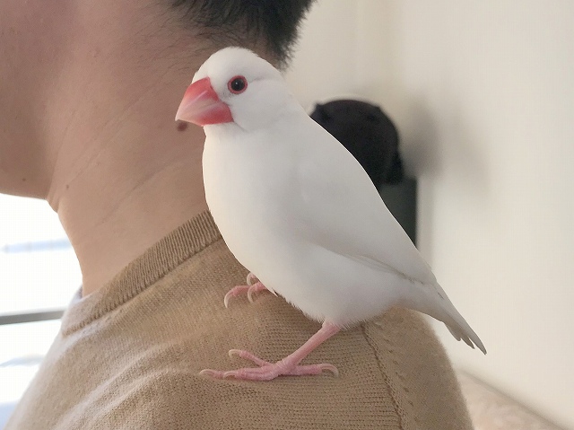 そして、初対面の長男の肩でも関係ないみたいですね。部屋に人がいる間は誰かのどこかに乗ってるので常にかまってもらえて幸せそう〜(ウンチするけど、匂いはまったくしないんですよ)