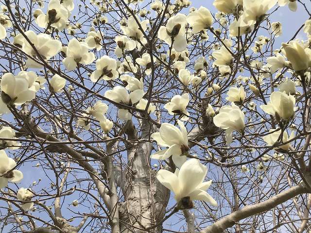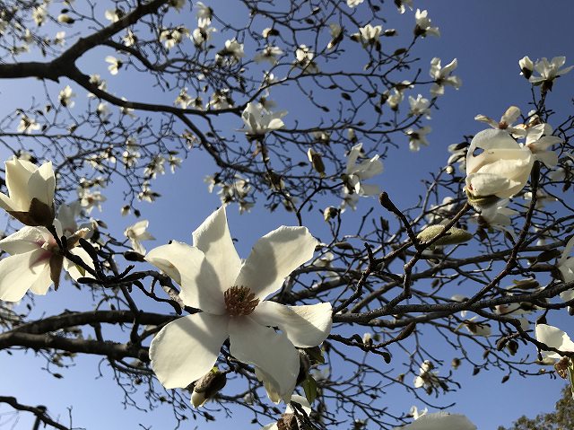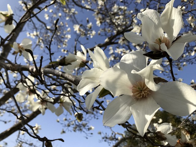 ハクモクレンと梅の花が綺麗に咲いてました。香りがあまりしなかったのは昨夜の雨のせいかもしれないですね。