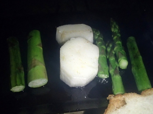 アスパラ、長いも、茄子、ぶっといハム、さつま揚げ、じゃがいもをいっぱい。じゃがバターがめちゃくちゃ美味しかった!!
