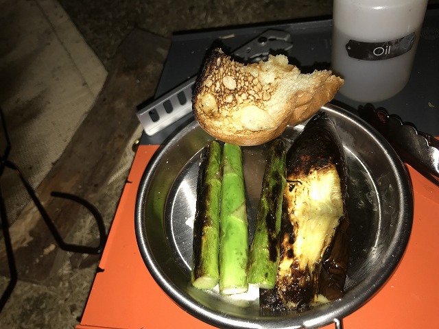 鉄板にオリーブオイルを引いて、野菜と肉を焼くだけですが、これが一番おいしいんですよね〜。いっぱい調味料持って行ったけど、使ったのはオリーブオイルとバターだけ(笑)