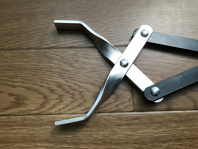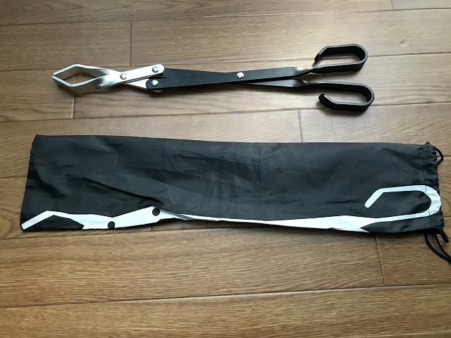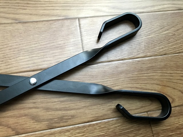 そして、薪ばさみも新しくしました。これまでは、半分にした薪だったので100均のものでも問題なかったけど、デカい薪を扱うにはしっかりした薪ばさみじゃないとね〜。というい事でスピさんが使っているこのタイプが1000円しなかったので導入しました。みんなでソロキャンプするときに間違わないようにみんなと違うブラックにしました。