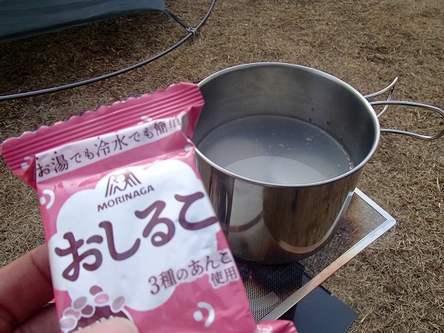朝食はぜんざいです。クッカーにお湯沸かして、お持ち入れて柔らかくなったら、インスタントお汁粉を入れるだけです。めちゃくちゃ簡単で暖まりますね。久しぶりのソロキャン満喫しました!食べてるものだけの記事になってきた〜