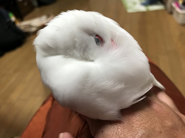 神戸のマンションで買うので、手乗りにするためにスポイトで餌やりを何日かやってから千葉に来てしまったので、帰省した時に手乗りするか心配してましたが、ほぼ1年ぶりの僕のヒザで寝てます(笑)