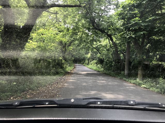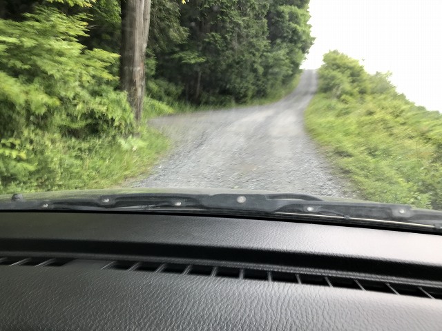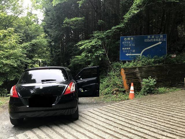 車のルートは真壁市から登るルートと石岡市から登るルートがあります(つくばねオートキャンプ場の上なので)。どちらのルートもダートですれ違いが出来ないので大型車は入れません。こんな感じの気持ちのいい舗装路を走っていくと通行止め看板がありますが、そこからダートに入ります。登山者がいっぱい歩いているのでゆっくりと〜。(これは帰りの画像ですが、行きは下りなのでもっと怖い〜)