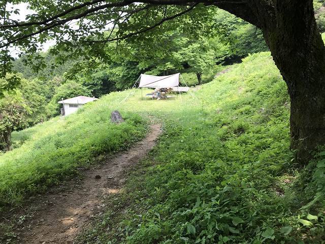 ファミリーはカートで入れるサイト12を利用してそうです。サイト2の下にも通路があって、その下には避難小屋があります。管理人さんが不在の時は、悪天候時の避難小屋としてカギはあけてあるそうです。↑サイト3 通路ではありますが、テント張ってもいいよ〜とのことです。サイト扱いになってるとの事です。ここも落ち着きそうです。