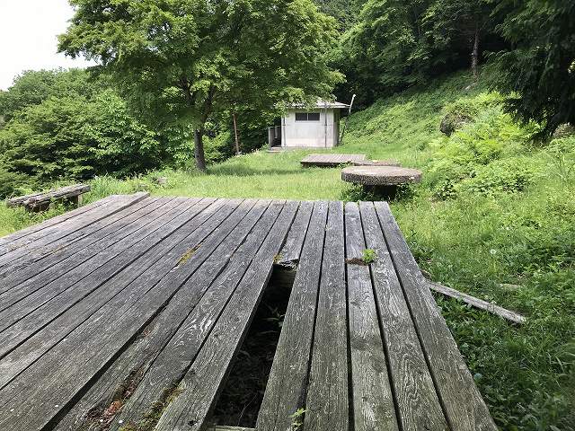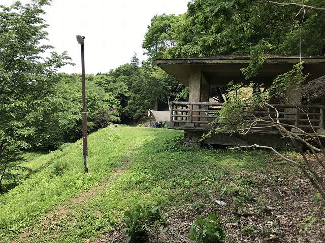 ↑サイト1 奥にトイレ、手前にウッドデッキがありますが、ウッドデッキは古いので気を付けてねって言われました。これも取っ払ってしまえばメンテナンスもいらなくなるでしょうね。