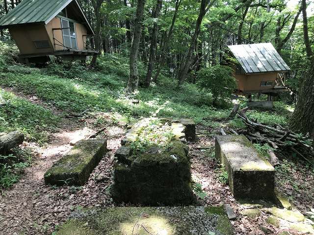↑サイト5 左側がサイトで、右側が登山道です。2022年に新しく整備されたサイトで、今回利用しました。青丸が水道で、サイト5の水道はほとんど水が出なかったのでサイト4を利用しました。