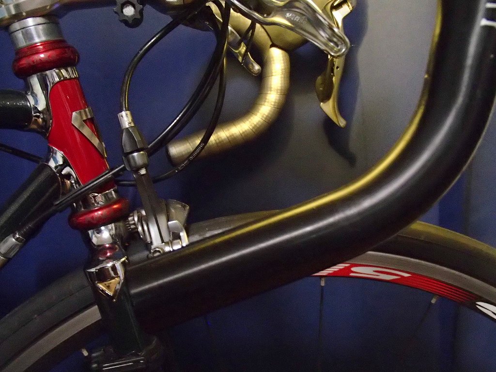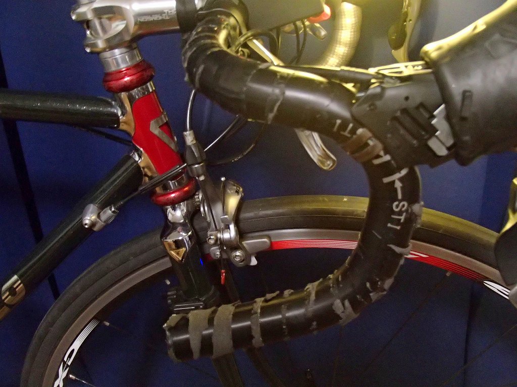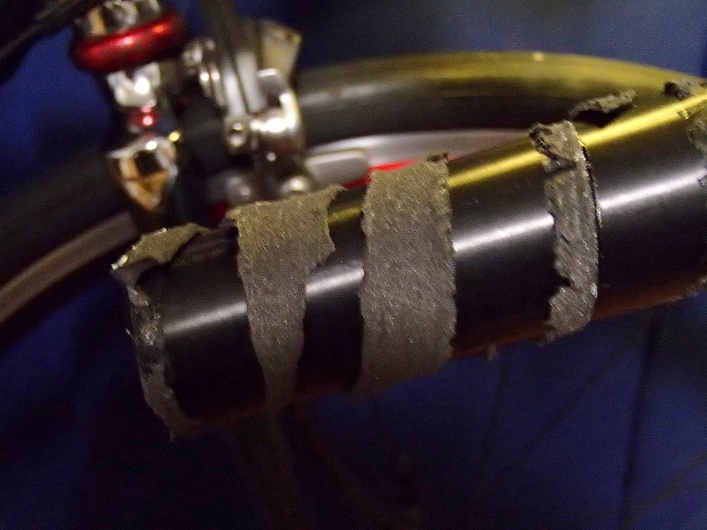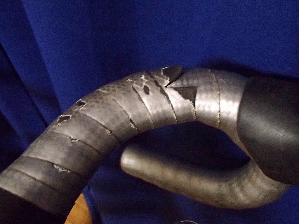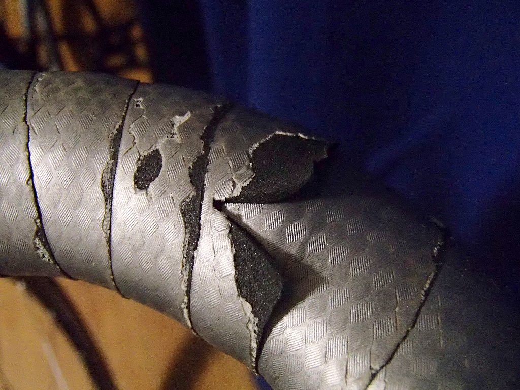 まずは、古いバーテープを外すのですがこれが大変でした。古いバーテープはすれて時々外れそうになってました。左側は半分切れていたのでもう耐えられそうにないですね。