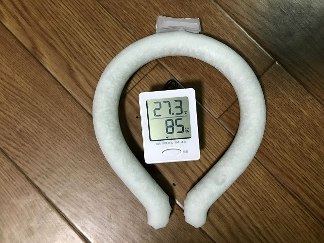 30度の部屋で装着していると3時間後には溶けてしまうけど、冷蔵庫に20分いれると復活するのでクーラー利用時間が減りますね〜。窓を開けて風に吹かれながらネッククーラーを装着している方が快適に感じてます。(除湿はしたほうがいいかもしれませんね)