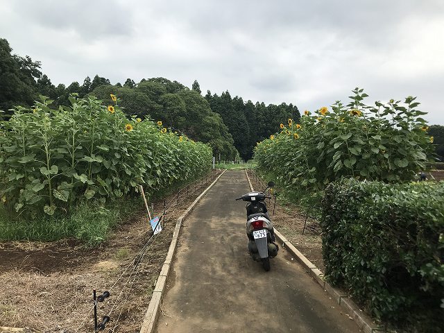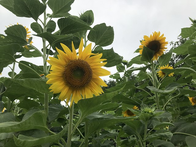 ひまわりの背が高い(笑)昔ながらのひまわりなんでしょうね〜。上から見るための台はないので、、ほとんど見えないけど、ちらほら咲いてました。もう少し後に満開になるのかもしれませんが、小学生の時に育てたひまわりを思い出すほど重そうな花でしたが、油を採るのかもしれませんね。
