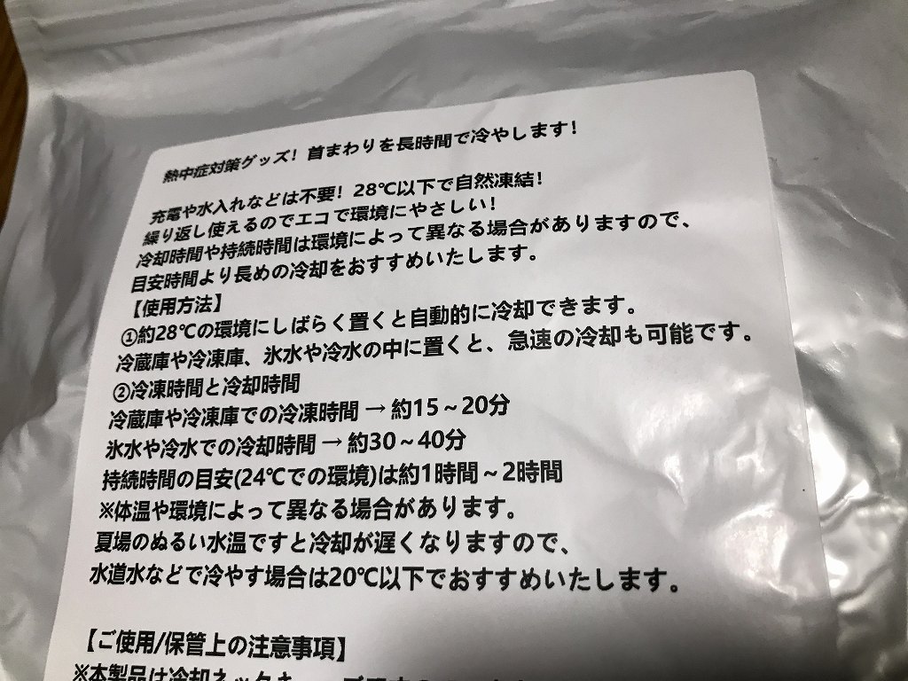 今回もネッククーラーを使ってみましたが、2時間で融けてしまいました。気温34°Cでジッとしていたので、猛暑の中での持続時間はこれくらいなのでしょう。それでも汗をかくことはありませんでしたね。