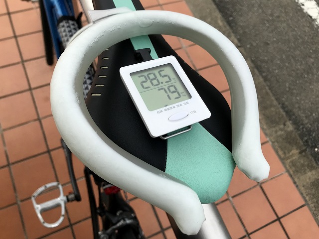 30分くらい走ってきましたが汗をかいた感じはしません。工事中のサイクリングロードのアスファルトに座っているので30度くらいですが、融けた感じはまったくなし。