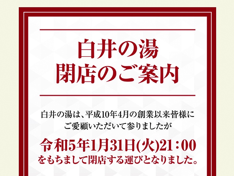 それから、あっちこちの温泉に入って、暖まる温泉を探して見つけたのが「白井の湯」でした。工場地帯の中にポツンとある天然温泉も信じられないですけどね。2023年1月いっぱいで閉館してしまうという事で行ってきました。(あと1週間しか営業してないなんて、、寂しいですね)