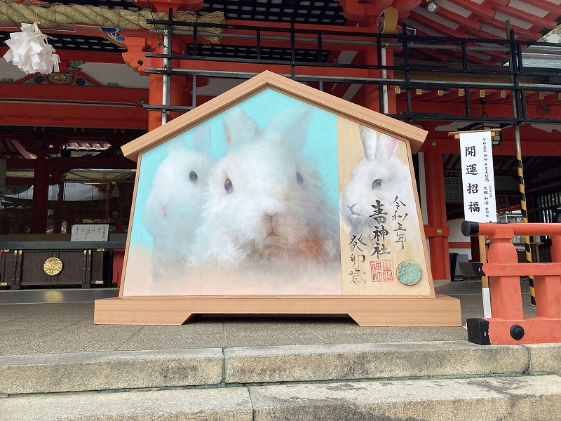 まずは、生田神社の絵馬です。ウサギ年なので12年に1回ですね。絵だけど写真のようなウサギさんです。それも年末に娘の居酒屋デビュー戦のついでなのお参りもしてないな〜。ここで巫女さんバイトやったみたいなんだけど、、、コロナだったのでほんのちょっとしか関われなかったので残念だったみたいです。