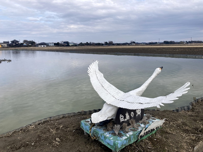 あれ?ほとんど白鳥いないな?と「本埜白鳥を守る会」方に聞くと、「みんな周りの田んぼや草むらにご飯を食べに行ってるだけですよ。お昼過ぎにはかえってくんじゃないかな?」って言ってました。そっか、この時は早朝に行ったのかもしれませんね。(この時の焼き芋めちゃくちゃ美味しかったから探したけどやってなさそう〜)