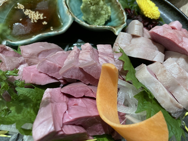 豚刺し(タン、ハツ、ハラミ)なんて、生??と思いましたが、高温でサッと焼いたのが「やきとん」で、低温でじっくりと焼いたのが「豚刺し」なんですね。初めて食べましたが美味しかったです。