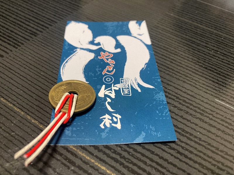 2023年 新年会?で「やきとん 御縁屋 はし村」さんに行ってきました。この5円は帰りにお店のおねーちゃんがくれたお守り?記念品?です。お店の名前にかけたんでしょう。なんか割烹料理屋さんみたいでうれしいですね。