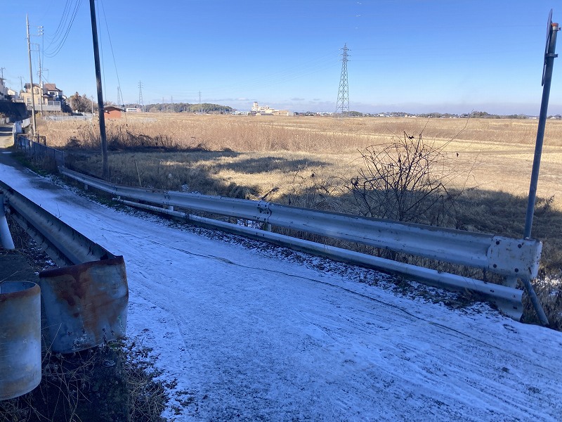 岡堰は今まで見たことがないくらい水がないです。右岸から左岸まで歩けそうです。さっきの雪をみていると守谷経由で利根川サイクリングロードはヤバそうなので、下流に向かったところで、ノスリに出会いました。