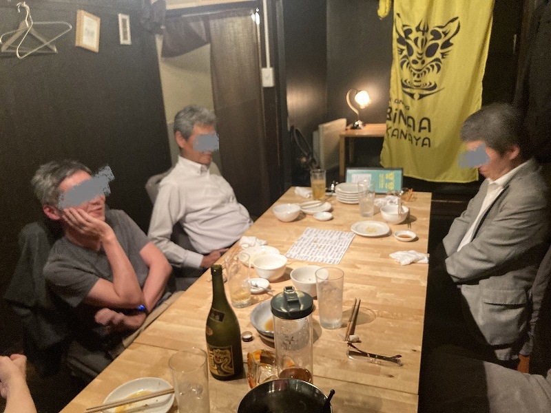 まずはオリオンビールですね〜。最近は2人集まったらビールを注文します(笑)ま、直ぐに5人になるんですけどね。それでも我慢できない〜。メニューがいっぱいあるので迷いますが、沖縄っぽいものを注文!途中から泡盛をさんぴん茶割りやロックでガンガン飲みます。