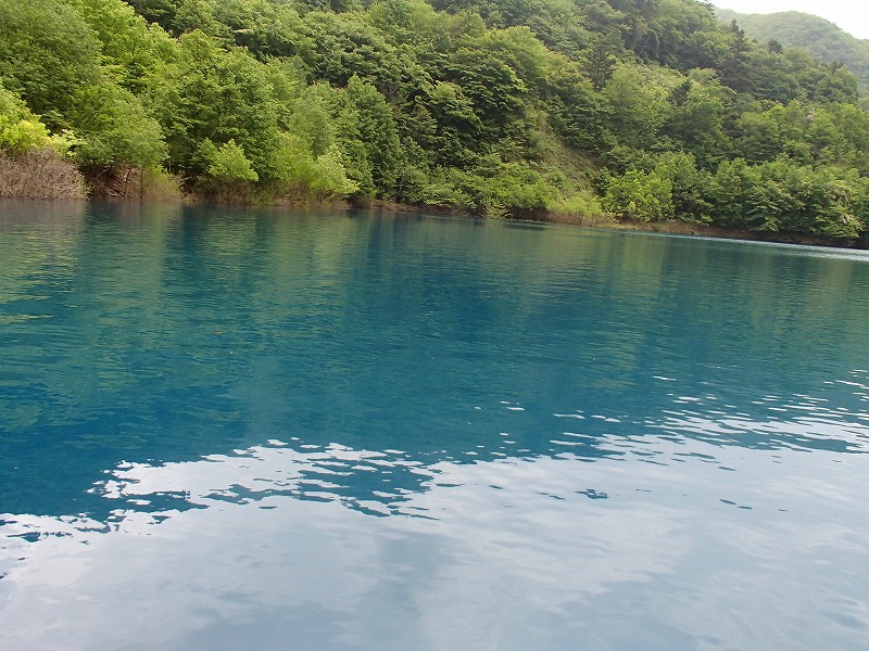これらの画像だけでも7種類に変化しているのですが、実際にはもっといろんないろになっているし、肉眼の方がめちゃくちゃ綺麗です。四万川にある湖といえば四万湖なのですが、奥四万湖はJR東日本のCM撮影されて有名になったけど、平日しか出艇できないのでそれほど混まないし、ブルーがきれいという事で奥四万湖にターゲットを絞りました。