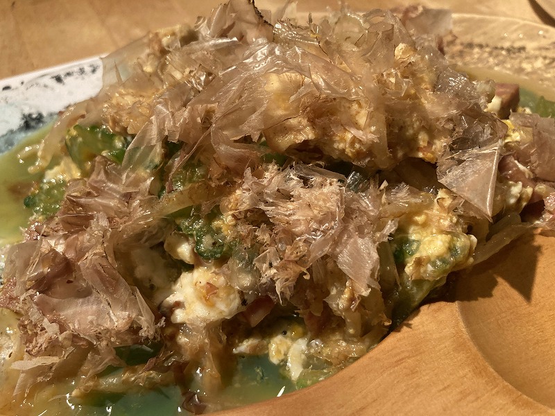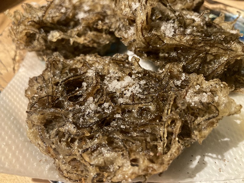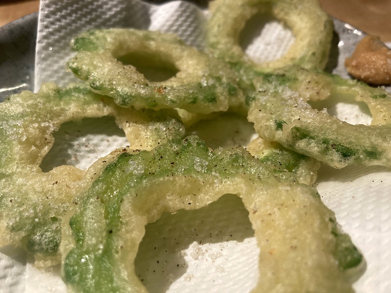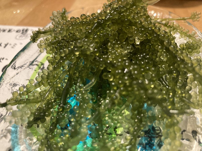 「島もずくの天ぷら」は外はサクサク中はしっとりめっちゃおいしいです。もずく酢が苦手な僕でも食べられます。かわいい店員さん達に5人分だとどう頼めばいいですか?と聞いたら厨房に行って聞いてきてくれるのですごく助かりました。