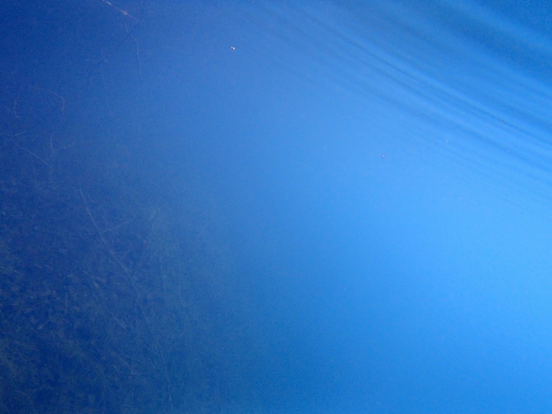 この辺りは周辺が土だったので、水中からは「ペールサルビアブルー」です。