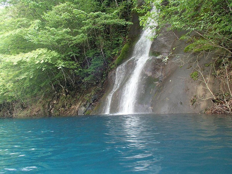 滝の下に太陽光が射しこんだ時には念願の「ターコイズブルー」になってくれました。