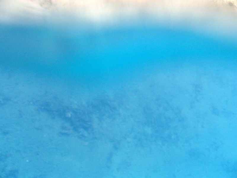 水中から水面に向かって撮影すると「パステルブルー」になりました。これは、、普通の水でも空が見えたらこの色になるのかな?