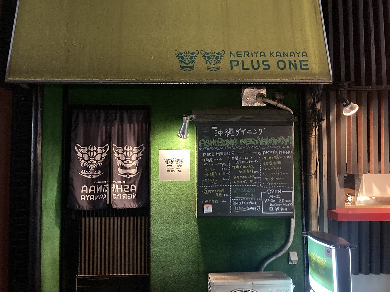 今回は行ったことがない沖縄料理の「アシビナー ネリヤカナヤ」さんに行ってきました。店の前には「ASHIBINA NERIYA KANAYA」がひっくり返った暖簾がかかってますが、通り過ぎてからシーサーの顔が気になって戻ったらこのお店でした。(もしかして暖簾が反対になってた?)