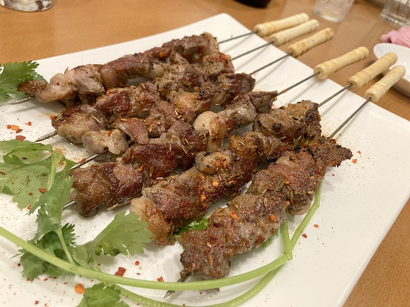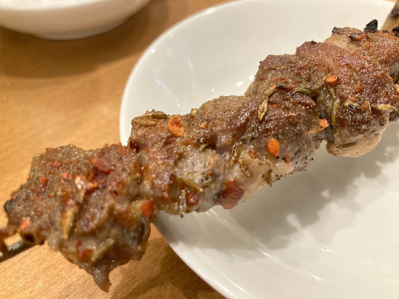 新作ですね。羊肉系のラーメンはまだ食べたことがないんですが、劉さんでの羊肉デビューは串焼でした。香辛料が効いていて美味しいです、、あれ?焼いた羊って初めてカモ?
