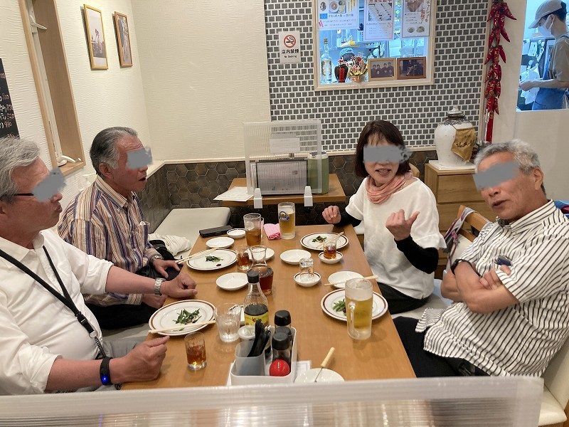 新店舗になってから初めてですね。夜にくるのも、電車で来るのも初めてでした。旧店舗ではこあがりで宴会することが多かったですが、新店舗はテーブル席です。今回は6人での開催で、速攻で定員になりました。(一部、顔出し許可をもらったんですが、、やっぱり自主規制〜)