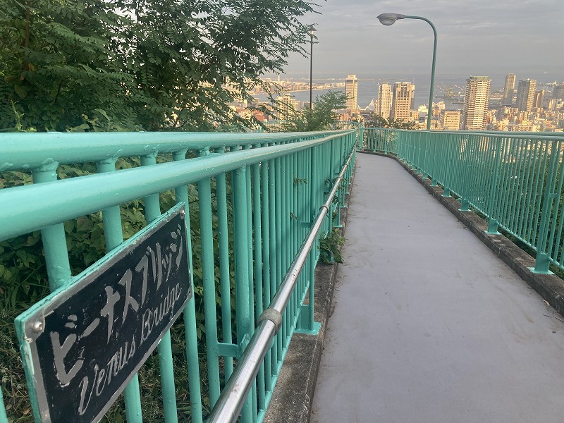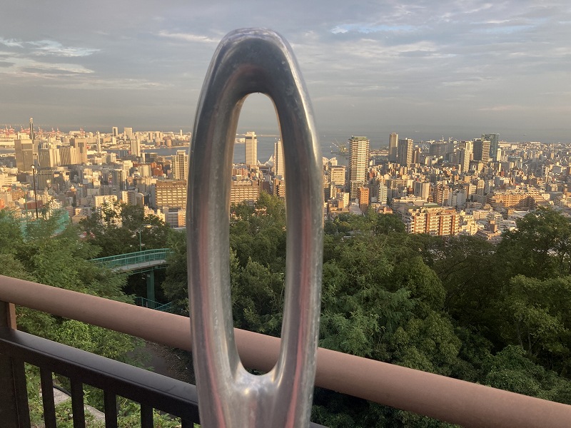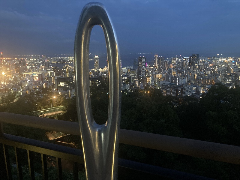 今年の2月頃にペンキを塗りなおしたばかりなので綺麗です。そして、ここにも針が、、この針はビューポイントサインとして神戸市が設置したものだったんですね。去年は「掬星台」で見た気がします。夕方から夜に駆けての変化を眺めるのが一番綺麗だと思います。