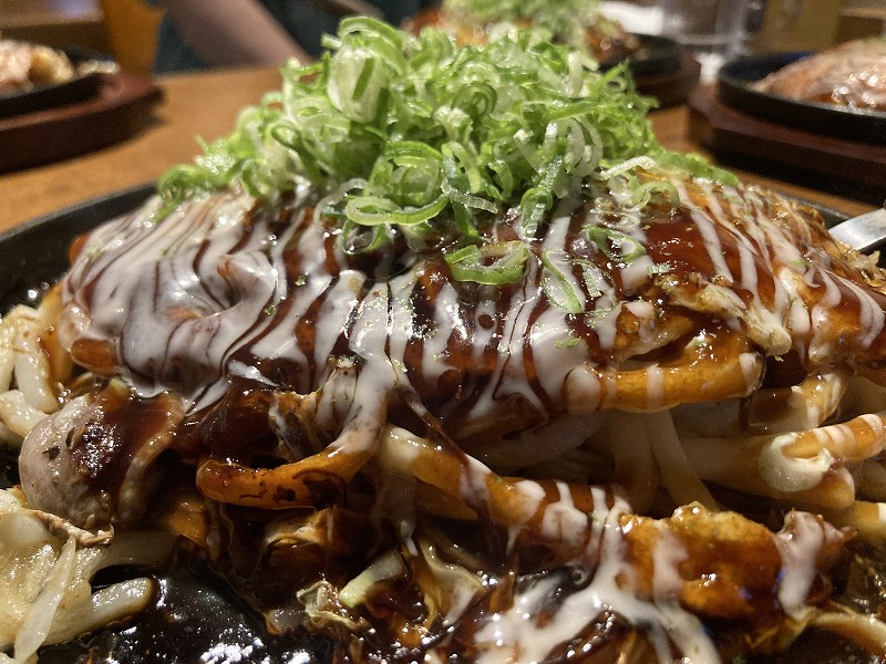 尾道といえば「尾道ラーメン」ですが「去年食べそこなった広島焼きが食べたい!」という全員一致で「鉄板酒楽さんしん」さんで尾道焼を食べました。カリカリに焼いた砂ずり、イカ天、うどんが入っていてめっちゃおいしかったです。オタフクソースじゃなくてカープソースって初めて見ました。