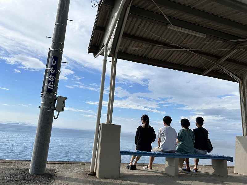 四国に上陸して、息子のリクエストの「下灘駅」に立ち寄りました。ここも有名な絶景スポットですね。千光寺より人がいっぱいでしたが、滞在時間は10分くらい。夕日を見て帰ってもよかったのですが、3時間は待てませんでした〜
