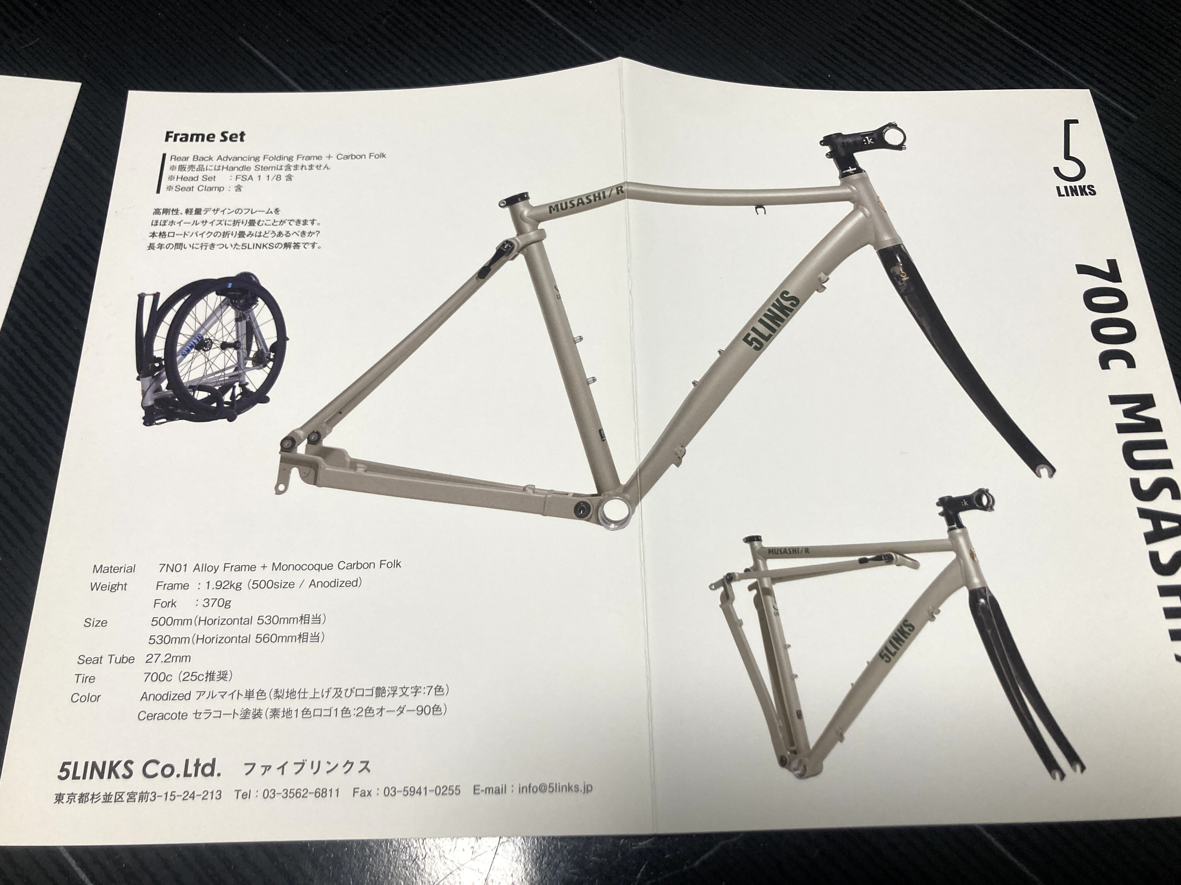 5LINKSも2017年から出展されてたようで、5LINKS2も展示があったので少し質問すると、5LINKS2.5というジオメトリを改良したモデルが出ているとのことなのですが、見た目ではハンドルが左右共に折りたためる点が一番変わった部分かな?ほとんど違いがわからない程度のようです。