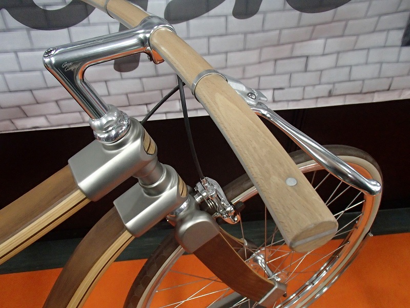 合板が使われていることが良くわかりますね。この構造だと横にはたわまないけど、縦にはたわむので振動吸収してくれそうですね。ハンドルまで木製というところがカッコいいい。20インチもあるんですね〜