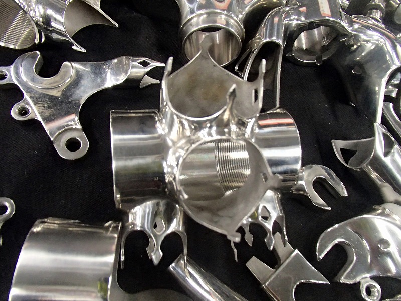 ハンドメイドバイシクル展2024に行ってきました。このキラキラメッキがいいですよね〜。こういうパーツが展示されているのもハンドメイドバイシクル展の特徴ですね。