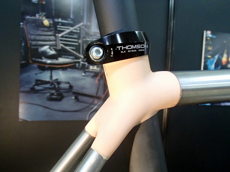 チタンフレームですが最新技術を使ってます。なんとラグを3Dプリンターで作ってるんですね。ラグの素材は何を使ってるんだろう?3Dプリンターで作ってそれをもとに金形を作ってチタンとかの金属で作ると思ってたけど違いそうです。