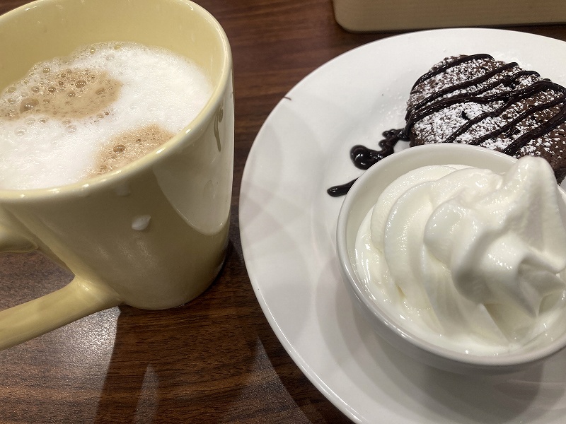 コーヒーだけのつもりが、ガトーショコラとカプチーノ(笑)1時間くらいいろんな話をして九段下駅から帰ってきました。まだ、帰るときにどこに向かえばいいかがわからないですね〜。帰りは45分くらいで帰ってくることが出来たので電車をちゃんと選べば近いですね。