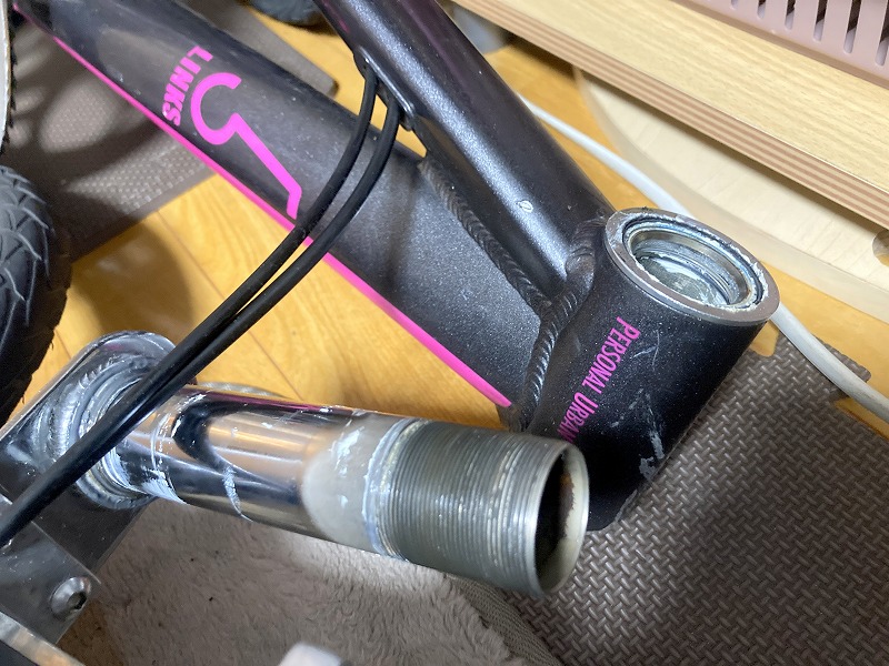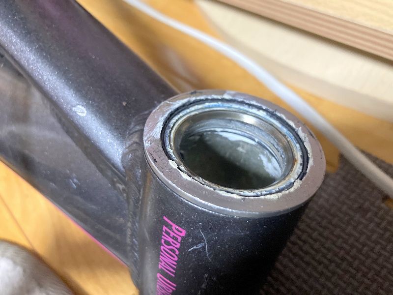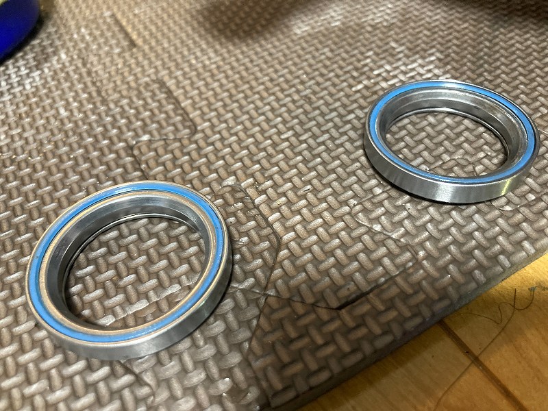 スレッドステムをヘッドから抜いたらヘッド下からもう1つ灰色の輪っかが(笑)こ、、これは!ウェスで綺麗にしたらやっぱりシールドベアリングでした!めっちゃ綺麗なシールドベアリングなのでこのまま使えますね。