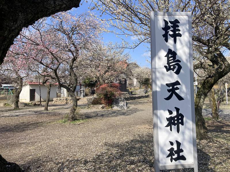 目的地の拝島天神社に到着!めっちゃわかりずらいけど梅が咲いてて発見できました。やっぱりほとんど散った後ですね。天気が良くて気持ちがいいのでベンチに座ってると、結構な人が見に来るようです。来年は時期をチェックして見に来ましょう〜