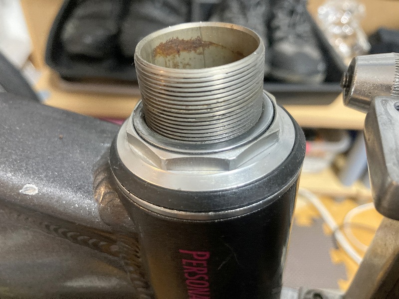 上ワンを外したら灰色の輪っかが出てきましたが取り外してしまうと、スレッドステムが出てきましたが、内部は錆びちゃってるみたいですね。