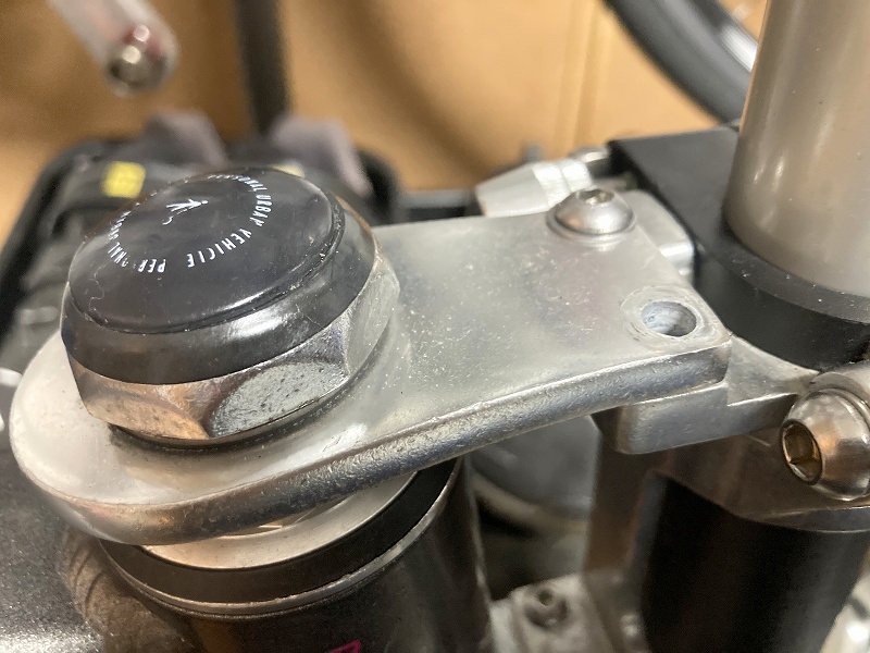 緩んでいた上ワンをしっかり締めてからブリッジやナットを元に戻して完成です。ブリッジについているナットにはねじ止め剤を塗布してあります。ハンドルがグニュッとならないかどうかはまだ確認できないけど、ハンドルポストを揺らしてもグリスアップ前のようにユラユラしなくなりました。治ったかな?