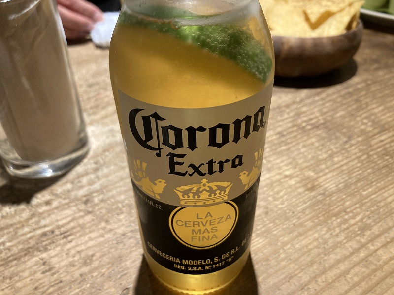 メキシコ料理が食べたいというリクエストで「ヒゲタコス」さんに行ってきました。メキシコといえばコロナビールなんでしょうね?ライムを瓶に突っ込んで飲むスタイルはめちゃくちゃ有名です。案外あっさりとしたビールですが、ビリヤードやりながら飲むものとして認識してましたね〜。