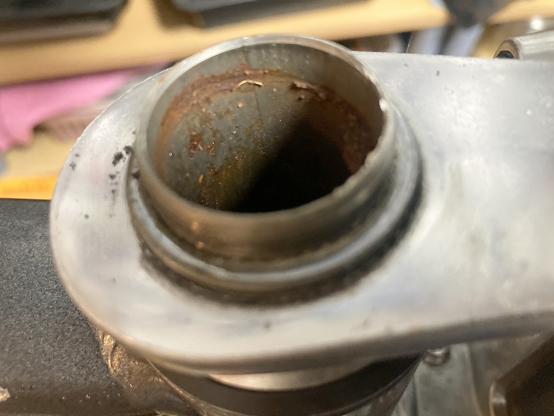 スレッドステムの内側だけが錆びてたので真鍮ブラシでゴシゴシして洗浄してからグリスをいっぱい塗っておきました。これで錆びる事はないでしょう〜。他のパーツもクリーンアップ&グリスアップしながら組付けておきました。