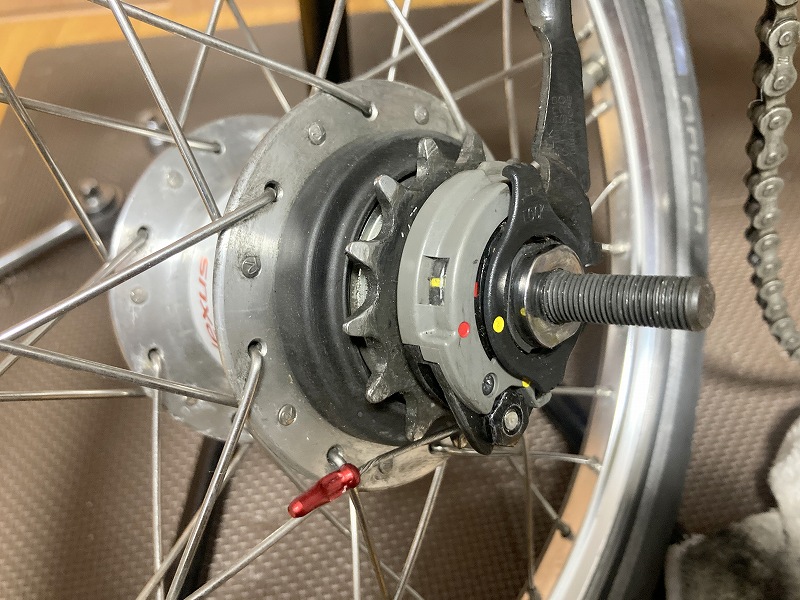 取り付けて変速してみると今度は4速あたりでギヤが飛びます。本気で壊してしまったかな?と思いながら先ほどのページに従って変速調整をしたらギア飛びが無くなりました。内装の構造がわかってないので理解はできなかったけど、よかった〜