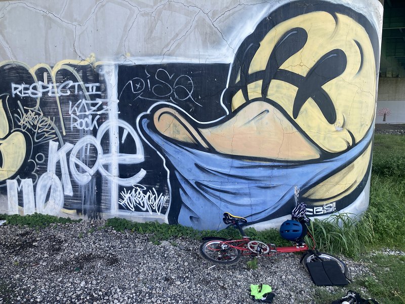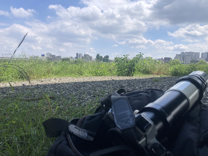 DAHONでのんびりと2時間くらいかけて撮影場所まで向かいます。最初は登戸あたりの河川敷に居たのですが、二子玉川までいってみて空いてたので飛行ルートの真ん中に陣取りました。橋の下にある日陰でのんびりと時間を待つことができたのでラッキーです。