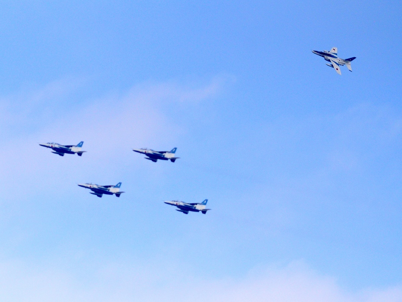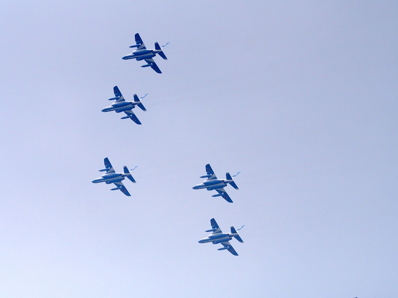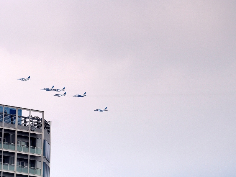 一か月くらい前にブルーインパルスが等々力公園の上空を展示飛行するという情報をキャッチしたのでカレンダーにマークしておきました。川崎市制100年の記念事業だったんですね。梅雨の晴れ間に青い機体が映えて綺麗でした〜(曇だったけどね)